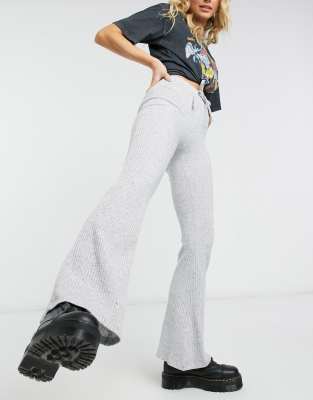 Topshop Tie Ribbed Flared Pants In Gray Heather grey ModeSens Very well made.