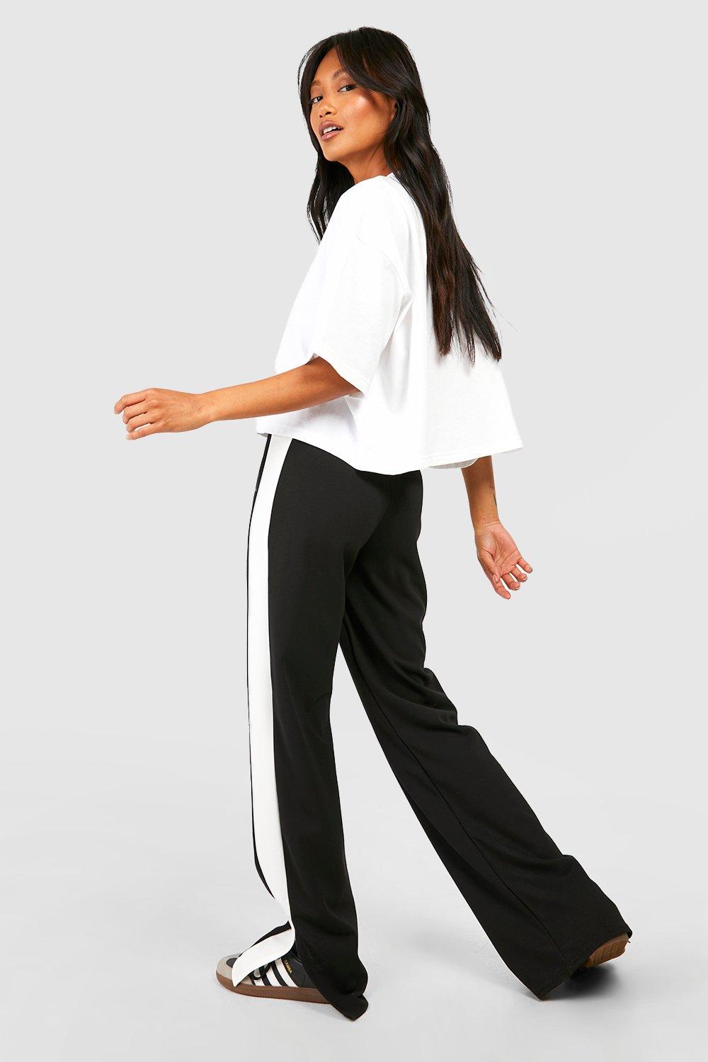 Pantalon fendu taille haute a rayures laterales boohoo FR Very well made.